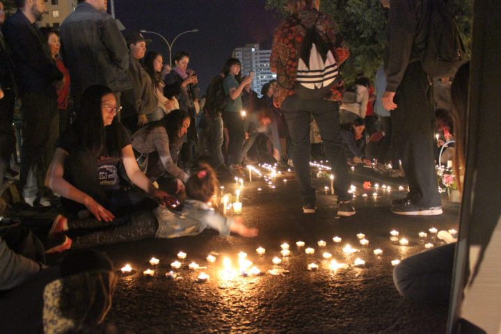 Una emocionante velada se vivió en Plaza Ñuñoa. El Derecho de Vivir en Paz de Victor Jara, El Baile de los que sobran de Los Prisioneros y otras canciones que se han vuelto emblemáticas en estas jornadas de manifestaciones, sonaban entre el silencio de las velas que alumbraban afiches y lienzos con las fotos de las personas que han muerto por la represión del estado en las últimas semanas de protestas en Chile.