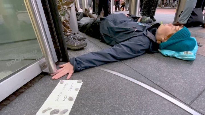 A pesar de la prohibición, las protestas de Extinction Rebellion continúan hoy en Londres, donde la cofundadora del grupo, Gail Bradbrook, intentó romper una de las ventanas del Departamento de Transporte con un martillo, mientras otros activistas se pegaban al edificio. Puedes hacer clic aquí para ver nuestra entrevista completa con Gail Bradbrook.