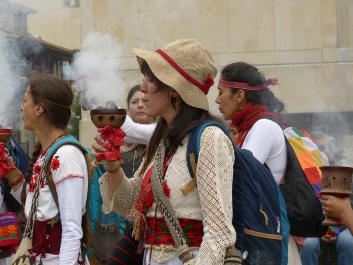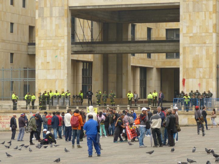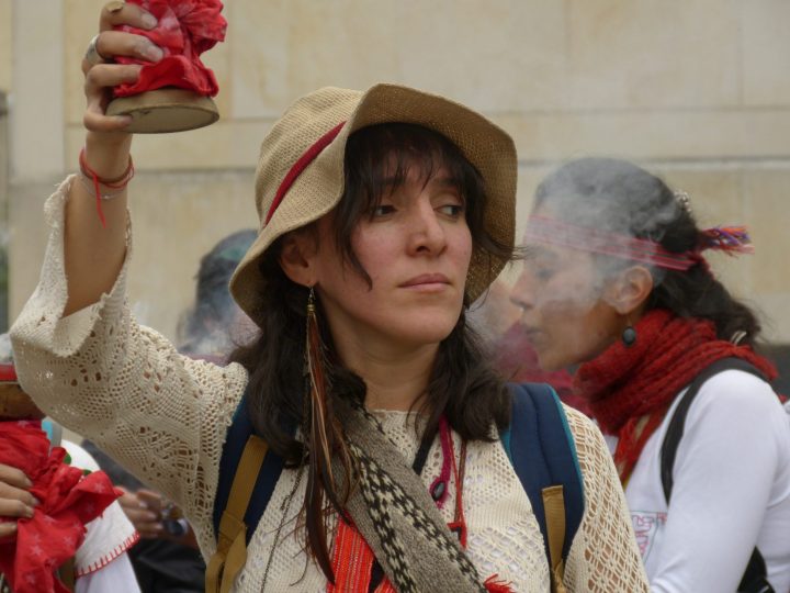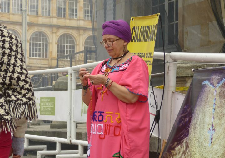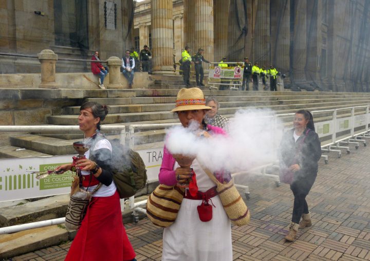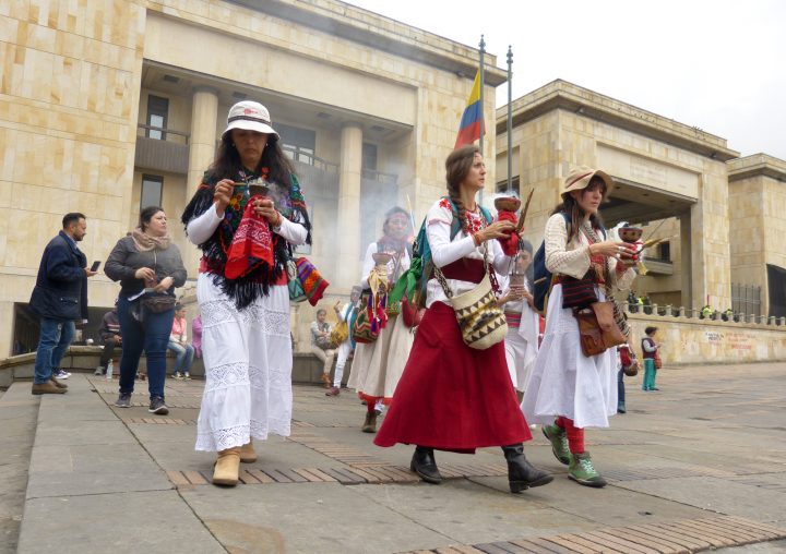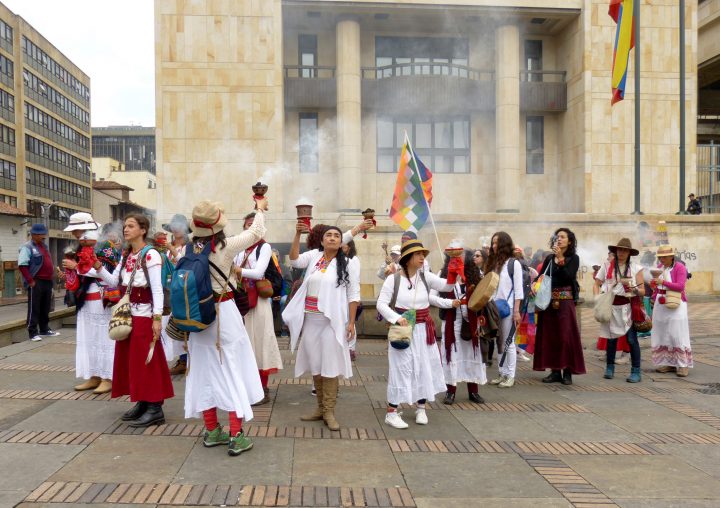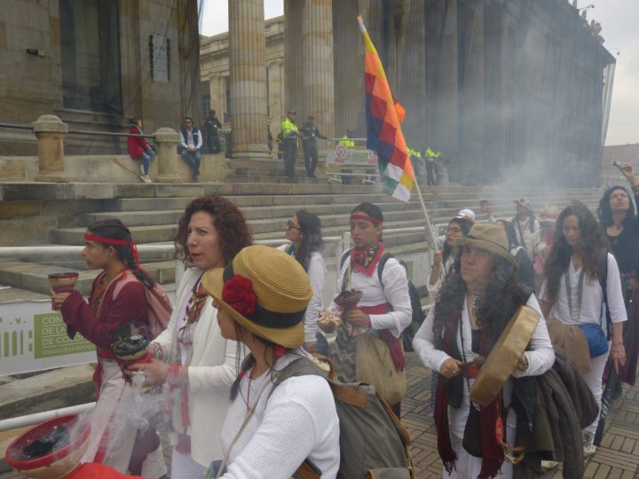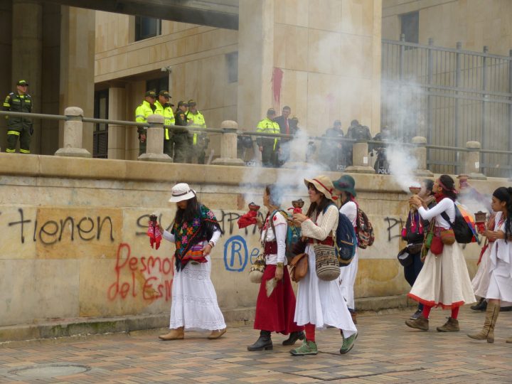 Mujeres saumeras recorren Plaza Bolívar y la Carrera 7ma para encontrarse con la marcha, durante ls movilizaciones en Bogotá, Colombia