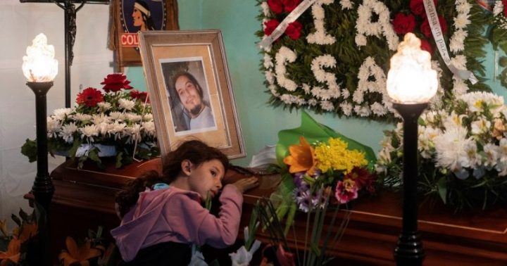 No la conozco. Presumo que es hija de Álex Núñez, uno de los asesinados por la policía chilena durante las manifestaciones. Ella permanece aferrada, incapaz de dejarlo ir, porque él no se despidió, probablemente nunca hablaron de esa posibilidad y esa niña quedó con sus ojos negros perdidos en el aire y en las flores. La policía de Chile golpeó a un hombre en la cabeza hasta matarlo. Cada patada y bastonazo al padre, dio también en los ojos negros de esta niña que no pudo encontrarlo más.