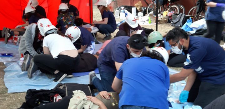 Acá dejamos el vídeo de Claudia Aranda, quien ha estado cubriendo las protestas sociales que han tenido como epicentro la Plaza Italia en Santiago de Chile. Aledaño al lugar, del otro lado del río, en calle Pío Nono se ubica la Escuela de Derecho de la Universidad de Chile y frente a ella se han ubicado los voluntarios por la salud, que curan a los heridos, sacan los balines que reciben y, si corresponden, derivan en ambulancias a los servicios de salud más cercanos.