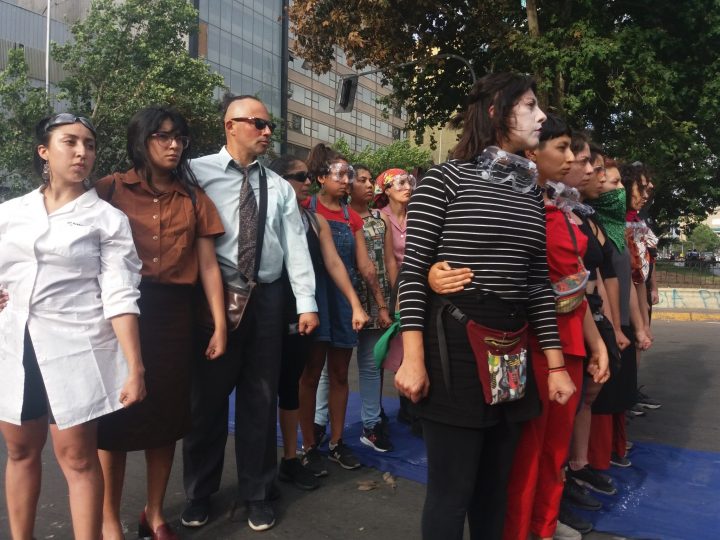 Como tantas otras ideas creativas en las que se ha apoyado la No-violencia activa para llevar adelante sus denuncias y protestas a lo largo de Chile durante este último mes, como los grafitti que han colmado los muros, la poesía con la que se han escrito los carteles, el ingenio que ha multiplicado los memes que corren por las redes sociales, las canciones y hasta el silencio sostenido, tal vez una de las que han ido resultando más vistosas y sorprendentes son los mitines relámpago organizados en base a performances, que de pronto en una esquina cualquiera, se ponen en acción para manifestarse.