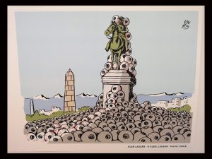 En la declaración que los artistas escribieron para la exposición, describen su consternación, su desesperación y su indignación por las condiciones que prevalecen actualmente en Chile. «En Chile no hay respeto por la vida» y «las diferencias sociales son muy grandes», escriben. La gente es asesinada, les destrozan los ojos y las mujeres son abusadas y violadas.