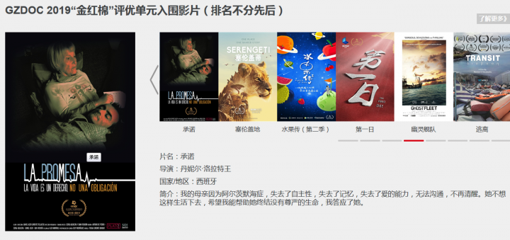 La Promesa ha conseguido ser uno de los 5 finalistas en la categoría de Mejor Corto Documental en el Guangzhou International Documentary Film Festival (China). A este certamen internacional se han presentado 3.457 documentales de 127 paises.