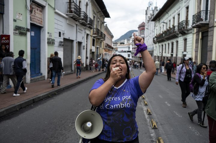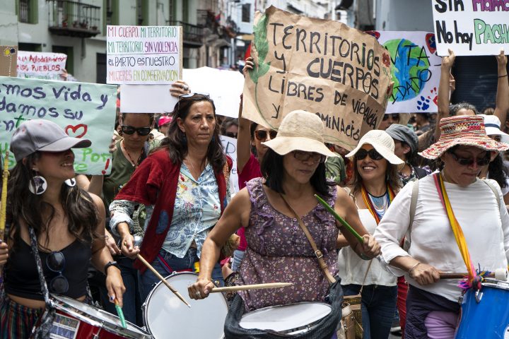 Las mujeres amazónicas marcharon además por la defensa de los territorios y naturaleza, al tiempo que confrontaron los extractivismos.