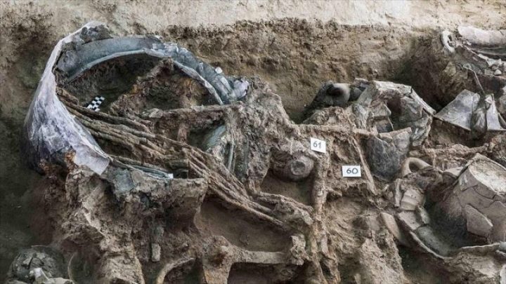 El área funeraria cubría casi media hectárea, agrega el estudio realizado por un grupo de arqueólogos de la Universidad de Bolonia (Italia). En las excavaciones han encontrado una colección extraordinaria de piezas: un casco de bronce, varias armas, diferentes recipientes de bronce y los restos de una carroza de guerra con ruedas de hierro, todo ello testimonio inequívoco de que su dueño era un miembro de la nobleza, según el estudio.
