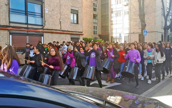 Era viernes 6 de marzo por la mañana en el Colegio Lourdes, cuando yo me hallaba en una clase sin saber muy bien qué hacer, medio cavilando el por qué de una huelga que no supe creer, que no me transmitía, hasta el momento, esa talante movilizadora propia de una reivindicación que no conseguía distinguir entre el silencio casi absoluto que apenaba ligeramente el vacío de las aulas, cuando comencé a oír fuertes golpes al compás de un ritmo instrumental. Es aquí, cuando, al asomarme por la ventana, escuché el grito de mi manada, mujeres que me acompañaban en este largo y costoso viaje feminista, compañeras y profesoras que golpeaban con furia manifestante tambores apaciblemente ensordecedores que no eran sino cubos del revés colgados a sus cinturas firmes y fuertes.