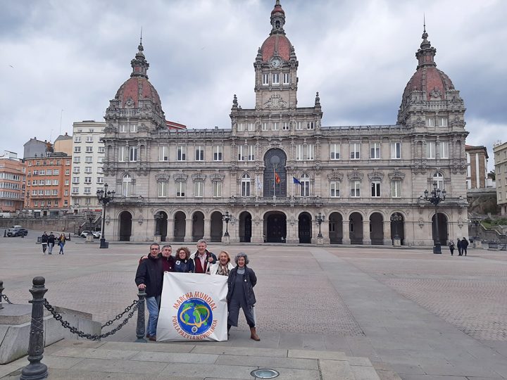 Miembros del Equipo Base Internacional y del equipo promotor de la 2ª Marcha Mundial por la Paz y la Noviolencia estuvieron el miércoles 4 de marzo en la ciudad de A Coruña.
