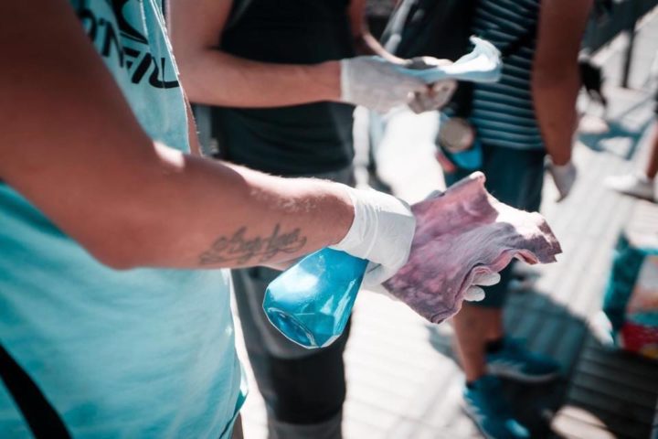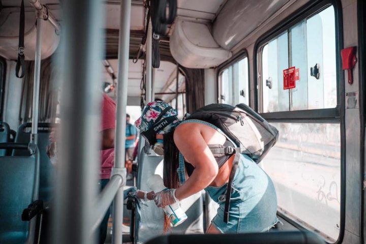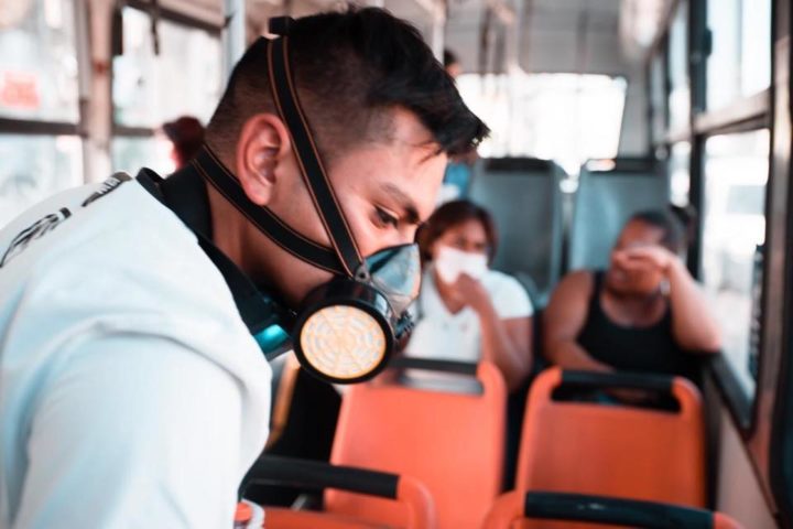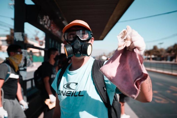 Publicamos acá el fotoreportaje de Fonda Permanente La Popular sobre la salida de los jóvenes que durante las protestas sociales chilenas estuvieron en la Primera Línea de Plaza Dignidad, enfrentándose a Carabineros y defendiendo el espacio de las manifestaciones, ahora desinfectando vehículos del transporte público a fin de que la gente que necesita trasladarse no se contagie.