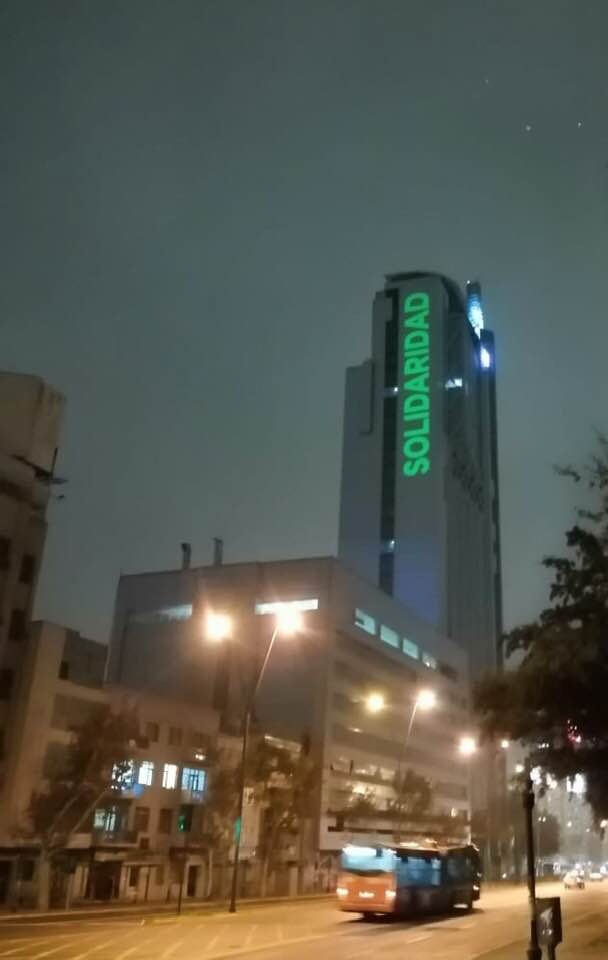 No tenemos ninguna afiliación política, trabajamos autónomamente desde el arte y es desde nuestro rol de ciudadanos-artistas que hemos realizado una serie de intervenciones lumínicas, muchas de las cuales han sido ampliamente difundidas por los medios de comunicación y las redes, sobre todo las realizadas sobre la fachada del edificio de la Telefónica en los últimos meses.