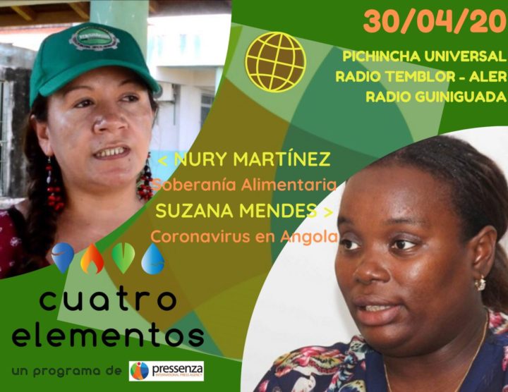 En el programa que realiza la Agencia de Noticias Pressenza para la radio pública ecuatoriana Pichincha Universal y se emite cada jueves a las 18 hs de dicho país, entrevistamos a dos lideresas de la comunicación. Desde Angola, hablamos con Suzana Mendes, quien nos ayudó a conocer las acciones que está llevando adelante el gobierno angoleño para enfrentar la situación de la pandemia de la COVID-19. A su vez, junto a la vocera de La Vía Campesina, Nury Martínez, también integrante de FENSUAGRO de Colombia, analizamos las posibilidades de repensar en mundo desde este nuevo contexto e implementar acciones que refuercen el concepto de soberanía alimentaria y respete a la naturaleza en la forma que se producen los bienes que el ser humano necesita.