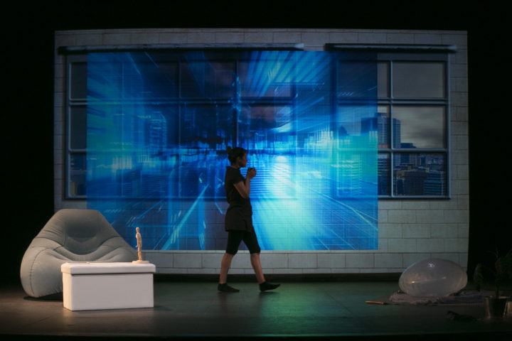Una actriz en escena, en constante interacción con ocho actores virtuales, nos sumerge de forma impactante en la historia de una joven fascinada con la era digital, en la que ha nacido.