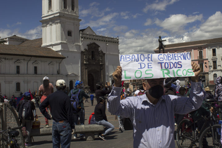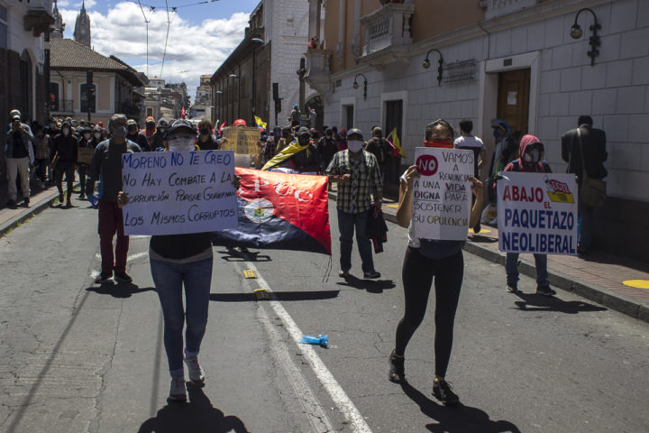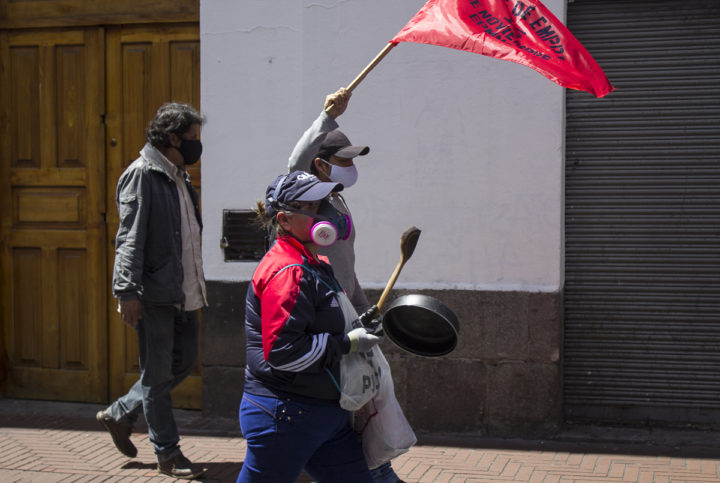 La marcha se dirigió hasta la Plaza de Santo Domingo, en el centro de Quito. Durante el recorrido se escuchó el retumbar de varios tambores así como los gritos de protesta contra el gobierno y sus principales representantes.