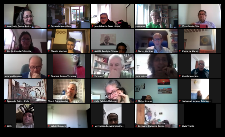 La sala virtual central se dividió luego para formar grupos de intercambio y reflexión, separando a los participantes según las distintas lenguas que hablaban y se había dispuesto un equipo de traductores voluntarios de castellano, francés, inglés, italiano, portugués y árabe.
