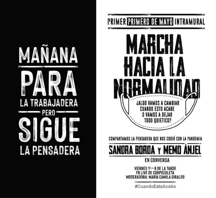 Después para la conmemoración del Día Internacional del Trabajo el primero de mayo, convocaron al “primer primero de mayo intramural”, con una marcha simbólica hacia la normalidad, a partir de la siguiente pregunta: ¿algo vamos a cambiar cuando esto acabe o vamos a dejar todo quietico? Esto como marco para un conversatorio. Así sucesivamente han venido produciendo un conjunto de diálogos virtuales sobre temas cruciales que se deberían revisar, pensando en la denominada “nueva normalidad”.
