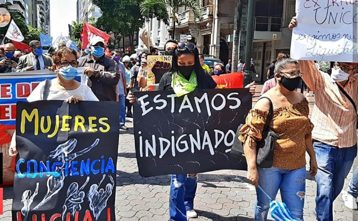 El terrible manejo de la crisis por parte del gobierno, las políticas y leyes aprobadas para privilegiar a unos por encima de otros, el abandono total de Guayaquil en los momentos más críticos de la pandemia, nos ha llenado de indignación a quienes militamos en favor de los derechos humanos y la justicia social. En este contexto, desde la Coordinadora de Organizaciones Sociales del Guayas hemos abierto algunos espacios de diálogo para analizar y debatir las afectaciones directas al pueblo guayaquileño, pero también para pensar en acciones o propuestas que pudieran ser compartidas con nuestras autoridades; sin embargo, ni el gobierno central ni el local han incluido reflexiones o aportes por parte de la sociedad civil o de los movimientos sociales. Por ello, ante los recortes presupuestarios a salud y universidades públicas, por nuestros muertos y muertas, decidimos sumarnos a las protestas que ya se venían realizando en Quito y Cuenca. Nos autoconvocamos para el jueves 14 en el Parque Centenario con el lema “Luto y resistencia”. Nos hicimos presente unas 35 personas.
