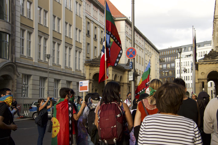 Hoy frente a la embajda de Chile en Berlín: protesta en repudio al ataque racista y en apoyo a los presos políticos mapuche!