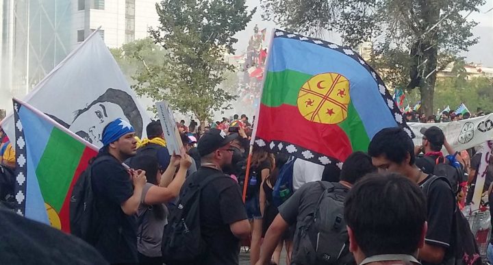 Desde octubre de 2019 y hasta el comienzo de la pandemia en marzo, millones de chilenos y chilenas se reunieron todos los días en la renombrada “Plaza Dignidad”, en el centro de Santiago. Se trató del alzamiento popular más importante de la historia democrática del país. La wenüfoye, la bandera mapuche, cubrió la Alameda, los muros y las ventanas de los edificios, y se convirtió en el símbolo del movimiento. Chilenos y chilenas se sintieron identificados con el pueblo originario y su lucha de siglos contra una élite que explota tanto a su población como a sus recursos naturales, y que usa a la policía para controlarla.