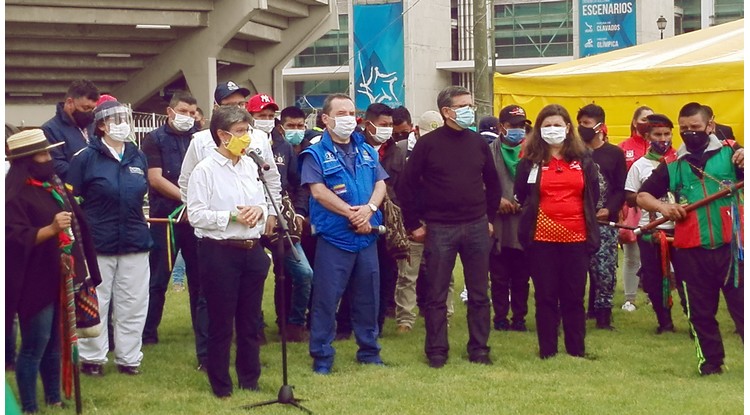 La alcaldesa de Bogotá, Claudia López, el domingo 19 de octubre, en el Palacio de los Deportes le entregó a los líderes de la Minga Indígena y demás representantes de la comunidad afro y campesino, el lugar donde podrán quedarse mientras se encuentran en Bogotá.