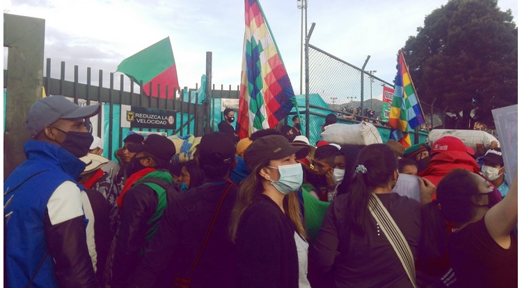 Hacia las 11:30 a.m., llegó al Palacio de los Deportes la avanzada de la Minga indígena y los representantes de las comunidades del sur-occidente, para recibir el lugar que López les entregó para su estadía en Bogotá.