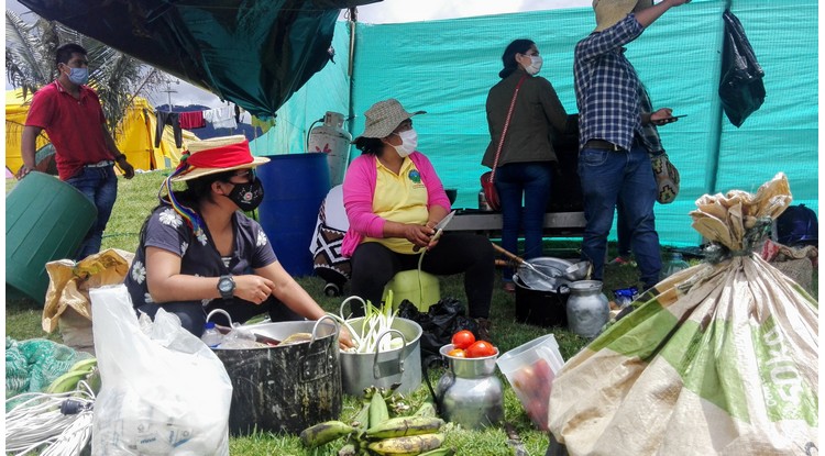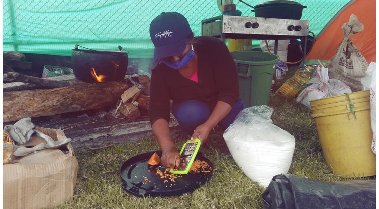 Al tiempo varios grupos de mujeres cocinaban los alimentos que sus familiares consumirían al llegar a Bogotá con los demás integrantes.