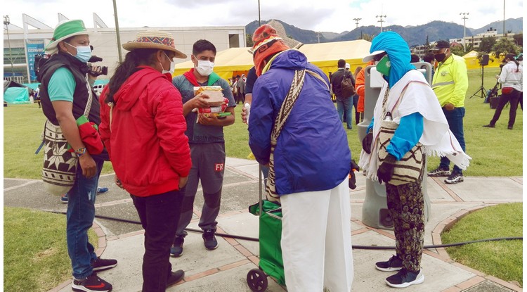 Los mingueros dispusieron medidas de bioseguridad ancestrales para las personas que ingresaron al Palacio de los Deportes, además contaban con médicos y medicinas autóctonas para la atender a foráneos y propios.