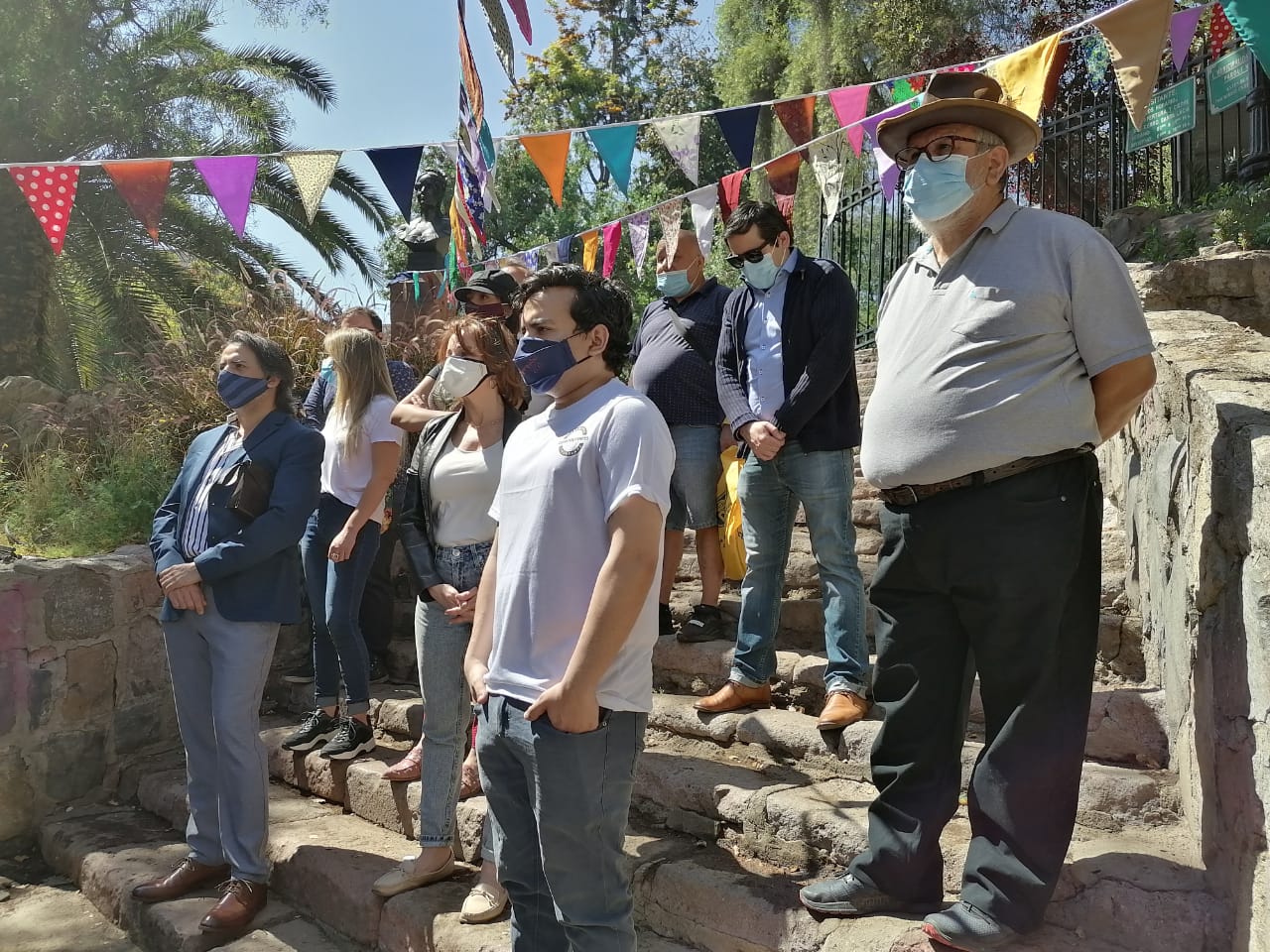Pressenza estuvo esta mañana en la conferencia de prensa en la que se dio a conocer el lanzamiento de la Comunidad por la Dignidad, en los escalones que suben al Cerro Huelén, en pleno centro de Santiago.