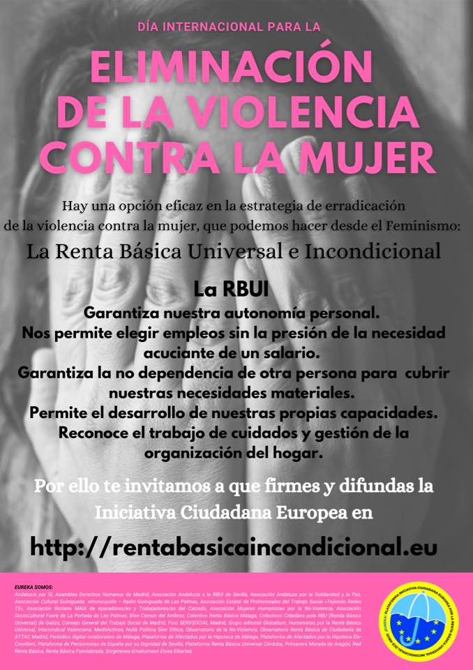 La Plataforma Eureka, responsable de la recogida de firmas para una Iniciativa Ciudadana Europea por la Renta Básica ha lanzado un manifiesto en el Día Internacional de la Eliminación de la Violencia contra la Mujer