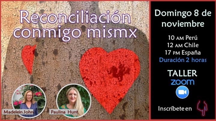 El domingo 5 de noviembre se desarrolló el taller “Reconciliación con uno mismo” facilitado por Paulina Hunt, actriz y dramaturga humanista y Madeleine John de El Mensaje de Silo. Participaron más de 70 personas de diversos países (Argentina, Chile, Perú, Bolivia, Ecuador, México, EE. UU., España, Grecia y Alemania).