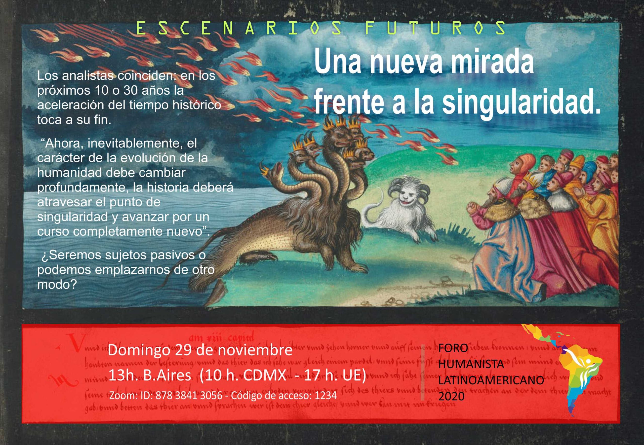 En las charlas de Escenarios Futuros en el contexto del Foro Humanista Latinoamericano deseamos reflexionar sobre la proyección de futuro del humanismo frente a la Singularidad.