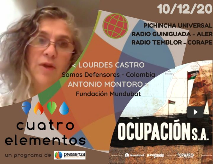 El programa Cuatro Elementos dedicó esta semana a darle continuidad a la situación del pueblo Sarahui, esta vez desde la perspectiva de Mundubat, organización de Euskadi que ha publicado el documental «Ocupación S.A.» en el que, entre otras cosas, evidencia los intereses del Estado español en este conflicto. Antonio Montoro, es nuestro invitado. Y como quienes nos siguen lo saben, Colombia nos llama, esta vez desde la voz de Somos Defensores, a través de su coordinadora Lourdes Castro, quien de una forma precisa, denuncia la situación, analiza lo que está sucediendo y nos habla de la Campaña #EsConmigo.