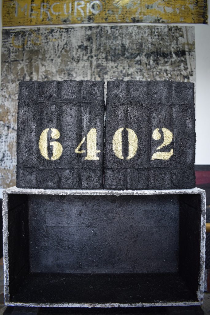 El interés de Bairo Martínez por las consecuencias que ha traído el conflicto armado en Colombia siempre ha estado reflejado en su obra. A este artista, que vive en Medellín y tiene una trayectoria de treinta años, le motiva explorar aspectos puntuales y crear símbolos que expresen una realidad compleja. Desde el 2014 viene reflexionando en sus piezas acerca de lo que significa la transformación del paisaje y el medioambiente por cuenta de la minería, y de cómo esta actividad extractiva está vinculada a intereses que pasan por el conflicto armado y que terminan afectando a la población civil. Por eso en su obra En Tinieblas utiliza el carbón y lo moldea en una pieza sólida y cuadrada que, en una de sus caras, lleva la cifra entregada por la JEP.