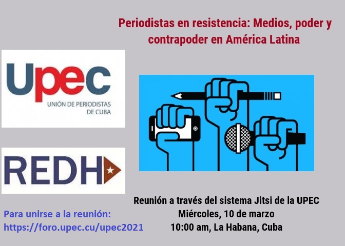 Como parte de la Jornada por el Día de la Prensa Cubana, del 5 al 14 de marzo, la Unión de Periodistas de Cuba y el Capítulo cubano de la Red En Defensa de la Humanidad organizó un encuentro virtual este 10 de marzo, donde se debatió el tema: Periodistas en resistencia: Medios, poder y contrapoder en América Latina