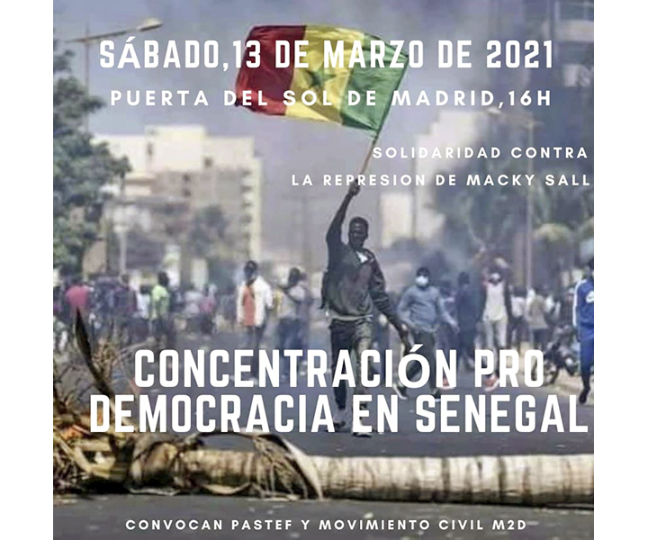 Colectivos pro-democracia senegaleses en España convocan acto este sábado,13 de marzo, a las 16.00 horas, en la Puerta Sol de Madrid para denunciar la deriva antidemocrática y las violaciones de derechos humanos del gobierno del presidente Macky Sall.