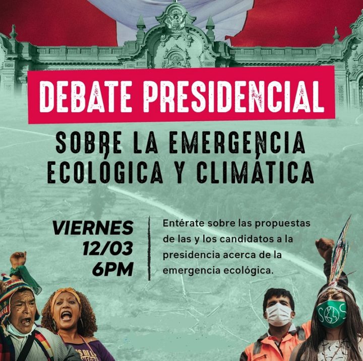 11 de marzo, 2021.- En un esfuerzo inédito de colaboración, organizaciones juveniles, indígenas, ecologistas y medios alternativos del Perú se unen para convocar al primer debate presidencial sobre la emergencia ecológica y climática, de cara a las elecciones generales de abril de 2021.