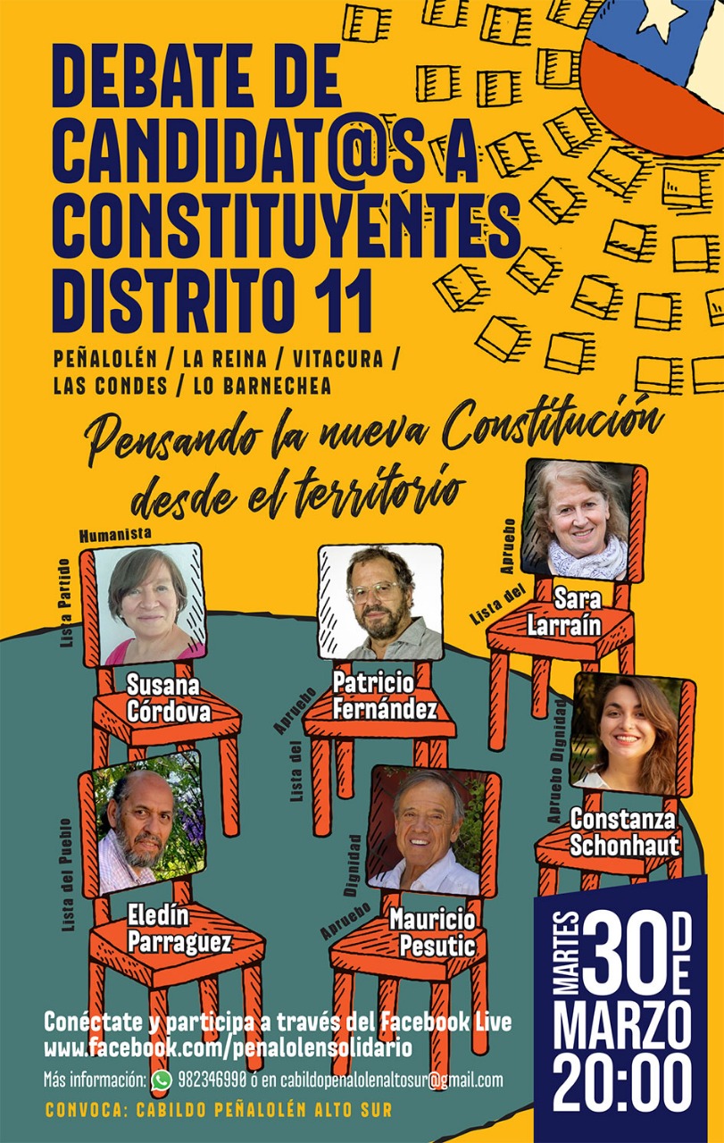 Una de las próximas actividades de campaña de Susana es la participación en un debate constituyente organizado por el Cabildo Peñalolén Alto Sur con 6 candidatos a la convención constitucional para este martes 30 a las 20h. Allí podremos conocer sus propuestas y hacerles llegar preguntas en directo.