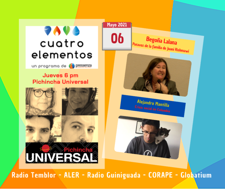 El programa que realizan los editores de la Agencia de noticias Pressenza para la radio pública ecuatoriana Pichincha Universal, Cuatro Elementos, se emite todos los jueves a las 18 hs y luego por las radios que repiten el programa en el resto del planeta.