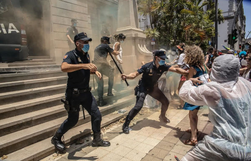 Al término de la escucha de sus reivindicaciones, la primera acción de la Caravana ha sido una manifestación antifranquista que partió del Puerto de Santa Cruz de Tenerife, un acto de repulsa contra la militarización de los puertos y contra los espacios de no derecho en que se han convertido los muelles de las islas.