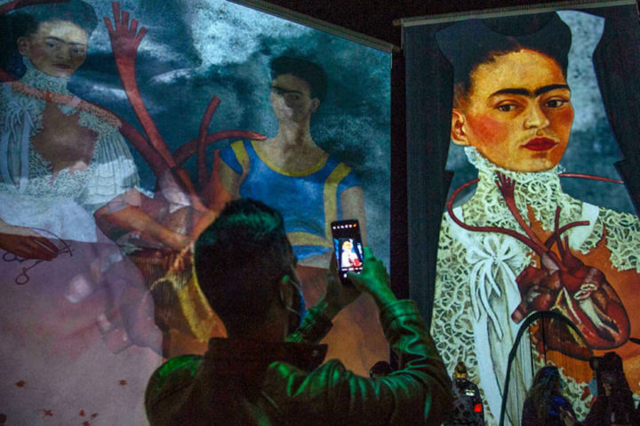 Bajo el título Frida. La Experiencia Inmersiva, el proyecto tecnológico gestado por la promotora Ocesa, Cocolab y la familia de la creadora, exhibe una selección pinturas a través de 90 proyectores, mientras más de 50 altavoces reproducen música regional mexicana compuesta por mujeres.