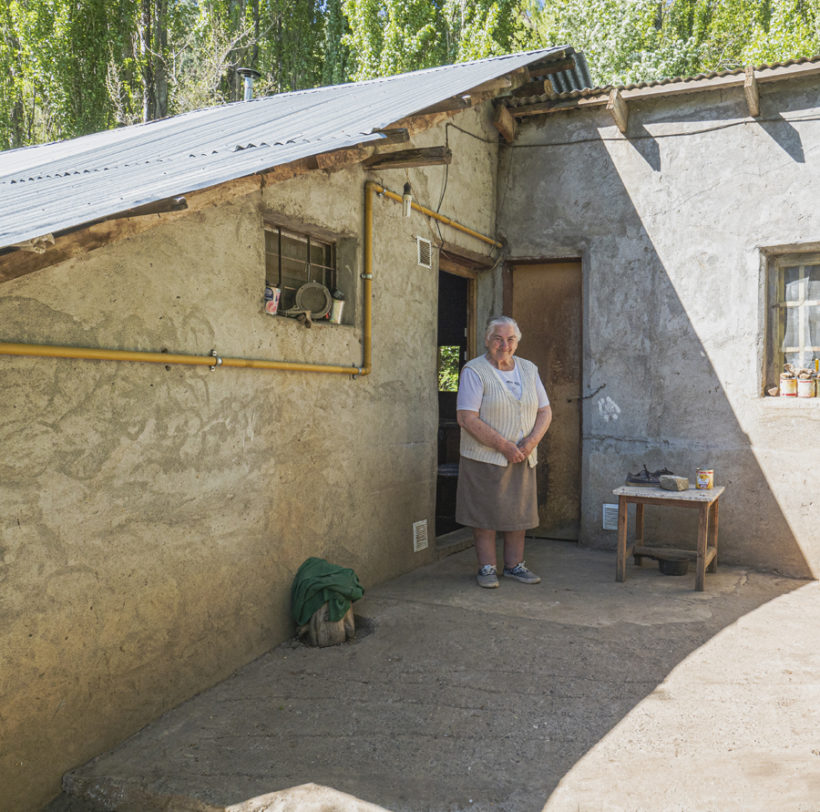 «A veces me quedo tejiendo a la noche… vivo de mi jubilación, de mi trabajo en la fábrica de dulce del pueblo.”