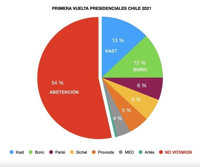 De aquí que los niveles de abstención (52%) de nuevo resultaran altos para un país que presume de democrático y del alto espíritu cívico de su población, lo que hace prever, en cualquier escenario, que el próximo mandatario no va a obtener un respaldo efectivo de más del 25 o 30 por ciento de los chilenos con derecho a voto. Tendremos un gobierno minoritario, con un parlamento que le será muy poco dócil, y con una enorme cantidad de expectativas sociales que lo más seguro es que vuelvan a encender la protesta social. Con el agravante de que la pandemia para nada está controlada, que las arcas fiscales simplemente no dan para resolver todas las demandas que siguen pendientes y conun Poder Legislativo al que le costará consentir con lo que se proponga el Ejecutivo.