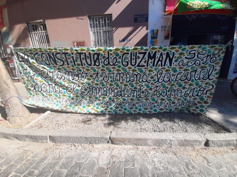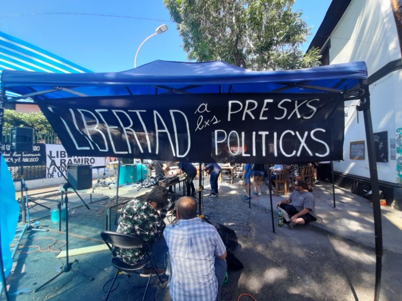 Actividad en apoyo a las distintas realidades de prisión política que hoy existen al interior de las cárceles chilenas, se realizó en calle Huérfanos, entre Sotomayor y Libertad. Un lugar histórico donde entre vecinos se han ido forjando profundos lazos solidarios en el día a día, un barrio donde idiomas, acentos y sabores de distintas partes del mundo confluyen en la calle, en sus esquinas y murales.