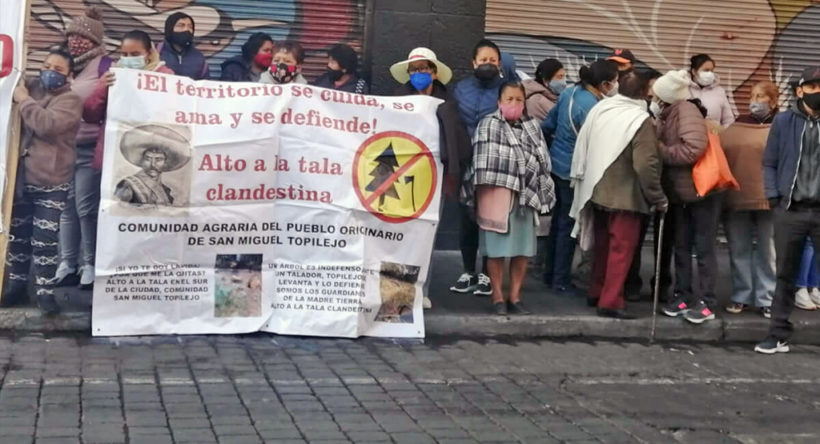 Eran las 6:30 horas del pasado 8 de diciembre cuando alrededor de 180 comuneras del pueblo originario de San Miguel Topilejo llegaron al Zócalo capitalino para exigir a las autoridades federales que atiendan el problema de tala clandestina en los bosques de la comunidad. Esta acción fue parte de los acuerdos de asamblea que días antes había tenido el sector agrario del pueblo, y fueron ellas, las mujeres comuneras, quienes levantaron la voz de la organización, quienes con indignación expresaron su preocupación por el bosque y la seguridad de las y los brigadistas que todos los días resguardan el territorio.