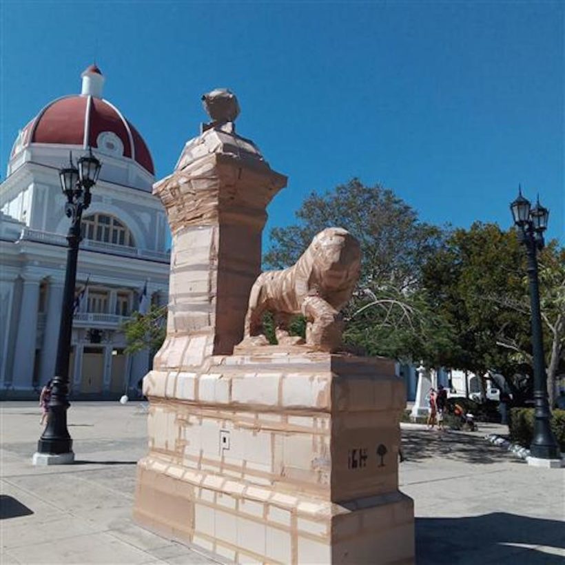 Los dos leones de mármol que dan acceso por el Este al parque José Martí llegaron a Cienfuegos en 1862, procedentes de Nueva York para convertirse en el primer mobiliario urbano de la villa fundada 43 años antes. (1819).