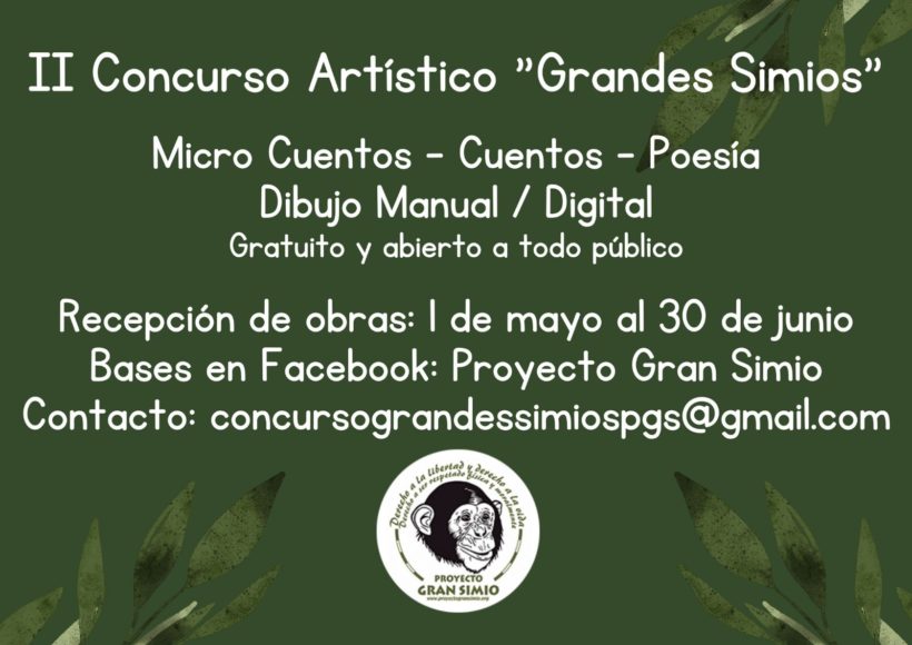 En el marco del trabajo que se viene realizando para lograr una LEY DE GRANDES SIMIOS, el Proyecto Gran Simio (GAP/PGS-España), lanza el II Concurso Artístico que se regirá por las siguientes bases: