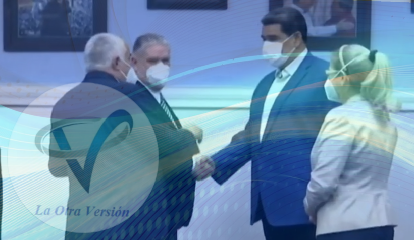 Lo acompañan la vicepresidenta de la República, Delcy Rodríguez, así como el Canciller, Carlos Faría. El encuentro se realiza en el Palacio de Miraflores, en Caracas informó la presidencia de la República Bolivariana.