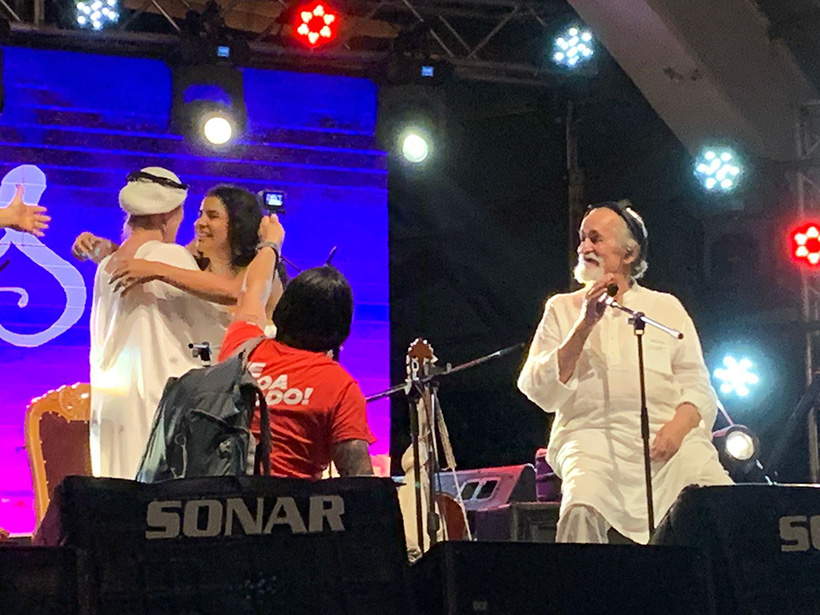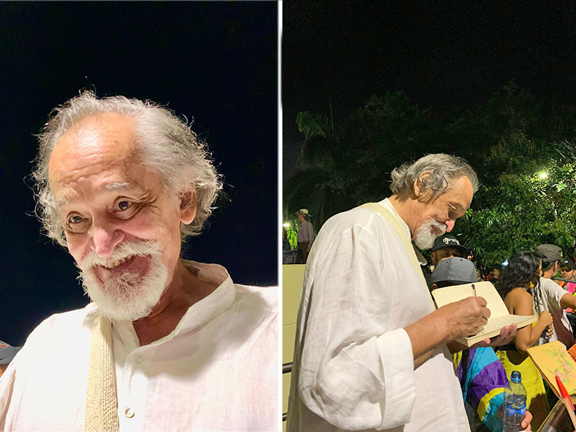 Por la noche Piedecuesta se vistió de concierto. La plaza se llenó de jóvenes de 20 años, señores de sombrero y cerveza, abuelas y niños conectados por el claro el cielo azul celeste una flor para mascar… En el escenario y junto a Tita, Pablus, todo vestido de blanco, tocando la guitarra y el alma de tres generaciones, parecía un Quijote, hermoso y eterno.