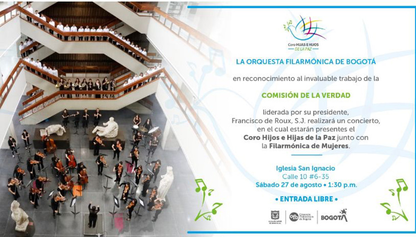Este concierto con el coro de hijos de la Paz y la filarmónica de mujeres, va a estar muy lindo; será una bella oportunidad de decirle ¡gracias! al Padre de Roux y a la Comisión de la Verdad.