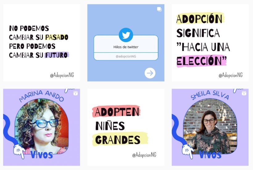 Cada viernes contamos la historia de una de nuestras familias en Twitter mediante el hashtag #adoptenniñesgrandes. Queremos visibilizar a estos niños grandes y sus realidades, derribar mitos y prejuicios sobre ellos y la adopción en general, además de desromantizar el proceso. También ayudamos en las consultas que nos llegan, siempre desde nuestra experiencia individual como madres y padres e intentamos llegar a la mayor cantidad de medios para que nos ayuden en la difusión y concientización.