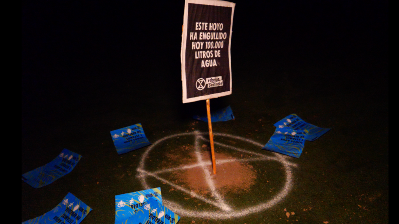 Con esta intervención, Rebelión o Extinción ha exigido un referéndum «para que la ciudadanía tome el control del agua y pueda decidir si quiere prohibir el golf en España, protegiendo así nuestras reservas de agua con un mínimo sacrificio».